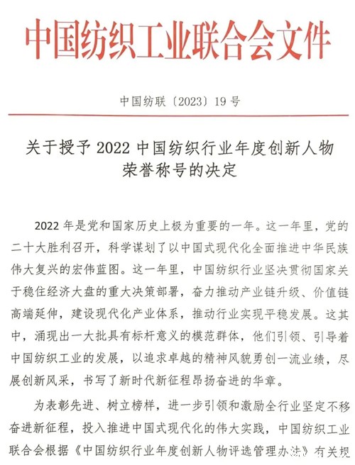 中国纺织行业年度创新人物评选活动是经中共中央、国务院批准同意的评比达标表彰活动,由中国纺织工业联合会自2005年委托《中国纺织》杂志社承办起,至今已进行了十八届,累计表彰了300多名创新人物,创新人物评选活动也已成为纺织业界的标志品牌活动。
