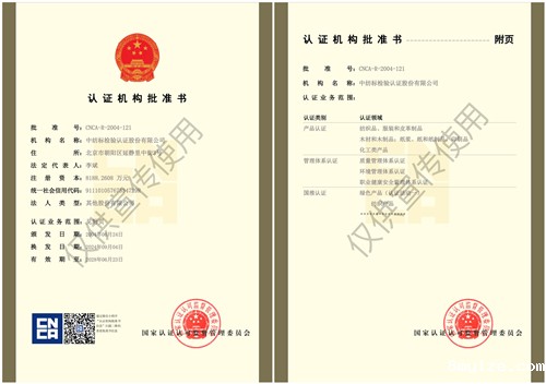 图丨认证机构批准书