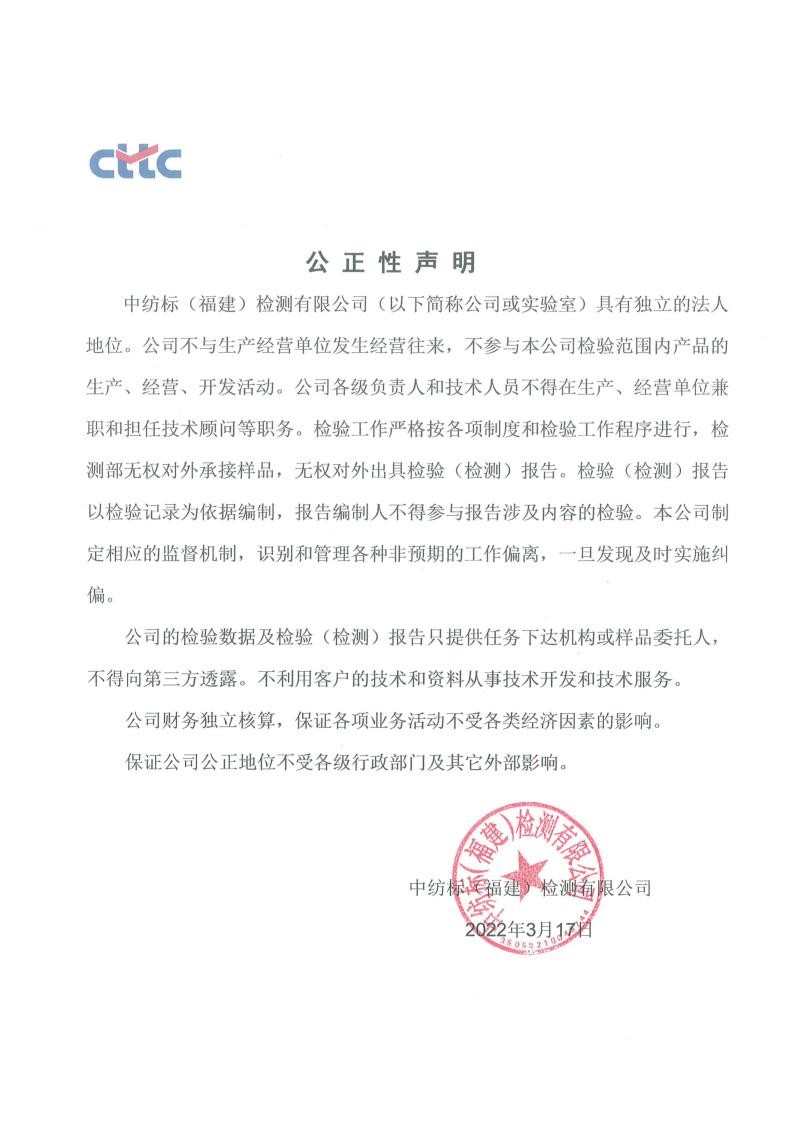 公正性声明(福建)
