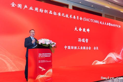 孙瑞哲致辞指出,标准是创新风向标,是合作连通器,是市场通行证,是产业话语权。我国纺织工业已建成纺织品、纺织机械与附件、服装、家用纺织品、丝绸、化学纤维、产业用纺织品等7个全国标准化技术委员会(TC)和18个分技术委员会(SC),纺织行业现有国家标准890项,行业标准1888项,初步形成了涵盖纤维原料、加工装备和三大终端应用领域的标准化技术组织和较为完整的标准体系,标准化工作发挥了基础性、支撑性和引领性作用。产业用纺织品是国家战略性新兴产业的重要组成,是纺织行业发展新质生产力的关键领域。但在科技创新和标准引领等方面,仍需进一步形成国际竞争新优势。TC606标委会的成立,将是产业用纺织品行业通过标准引领发展新质生产力的重要里程碑。他提出,标委会要挺膺担当,以标准引领高质量发展。一要有系统性,全局谋划;二要有前瞻性,与时俱进;三要有全球性,开放合作;以高标准牵引高质量发展。