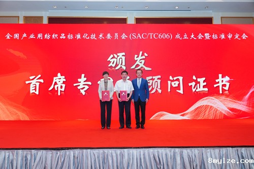 同时,为了更广泛地发挥各领域专家的作用,更好地开展产业用纺织品领域标准化工作,第一届全国产业用纺织品标委会特聘俞建勇为首席专家,徐路为顾问,19位专家为观察员,并向首席专家、顾问、委员和观察员颁发证书。