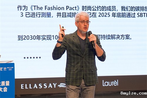 歌力思集团首席可持续时尚官Dominique Simard司马德明在《可持续发展与ESG:高端时装品牌集团的实践与启示》的报告中,分别从减少碳排放、倡导循环经济、保护生物多样性三大可持续发展议题,向参会嘉宾展示企业绿色发展成果。